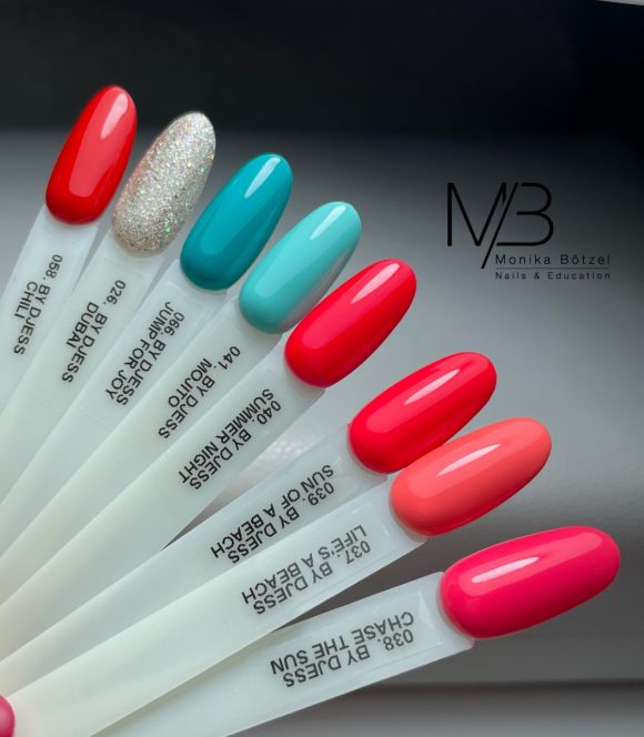 Als base onder de gel polish kleuren kan zowel de Founding Base , Smooth Base als de Gummy Base (rubberbase van By Djess) worden gebruikt.
