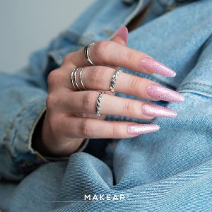 Gel&Go Glitter van MAKEAR is een builder gel die sprankelende glitters combineert met stukken holografisch folie. Ontworpen voor snel en comfortabel salonwerk.