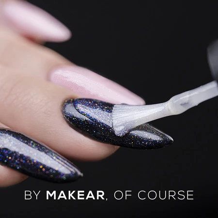 Top Magic Makear is een no wipe toplaag verrijkt met fijne glitterdeeltjes die gouden, blauwe, roze, paarse en lichtgroene tinten reflecteren. De transparante basis en perfect uitgebalanceerde glitterconcentratie zorgen ervoor dat het geen volume toevoegt aan je nageldesign en er prachtig uitziet in zowel lichte als donkere kleuren. Deze toplaag voor hybride nagels verfraait babyboomer-, ombre- of French manicure-stijlen. Het effect is zo mooi dat je het direct over gel of acrygel kunt aanbrengen – geen kleurlak nodig!